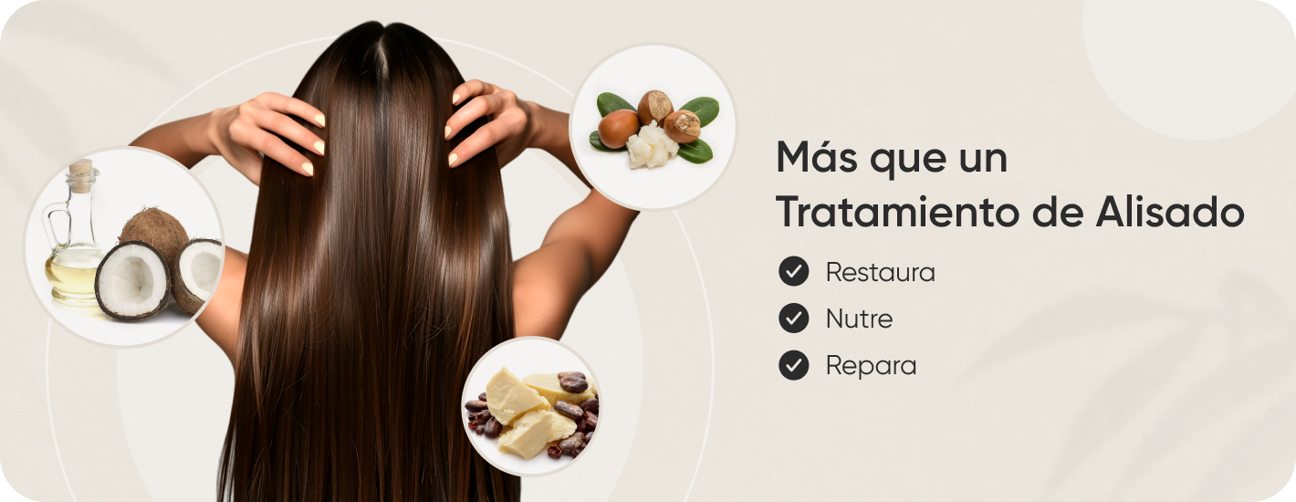 Su exclusiva fórmula, desarrollada en nuestro laboratorio, combina manteca de cacao, karité, aceites de coco y ricino, que cuidan tanto la hebra como el cuero cabelludo, esta mezcla especial proporciona hidratación profunda, aumenta el brillo y la suavidad, también contiene keratina hidrolizada, componente vital que sella y regenera la cutícula, repara el cabello de daños anteriores y reafirma nuestro compromiso de ir más allá del liso perfecto, aportando nutrición y salud a cada hebra.