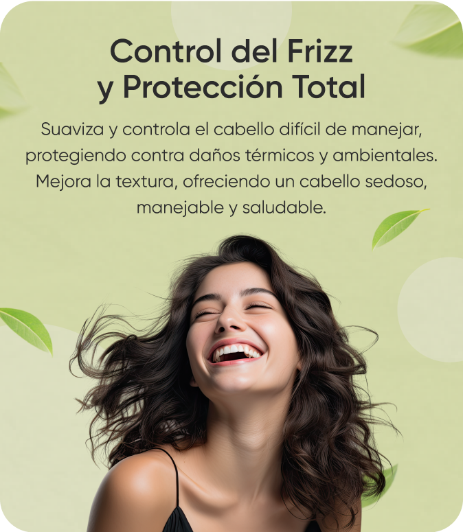 Solución integral para el cabello incontrolable, proporcionando suavidad, manejo y protección al instante sin sensación grasa. Los aceites de argán, coco, almendra y ricino, junto con la vitamina E, nutren profundamente el cabello, restaurando las puntas abiertas y sellando la cutícula, lo que previene el frizz y la apariencia esponjada. Además, crea una barrera protectora que resguarda el cabello del daño térmico y ambiental, siendo ideal para proteger contra el uso de planchas, secadores y la exposición diaria. Al mejorar la textura del cabello, le devuelve su suavidad y sedosidad, mientras que aumenta su brillo natural y lo deja con un aspecto saludable y manejable. Este producto es perfecto para quienes buscan controlar el cabello rebelde, restaurar daños y mantenerlo protegido y bien cuidado.