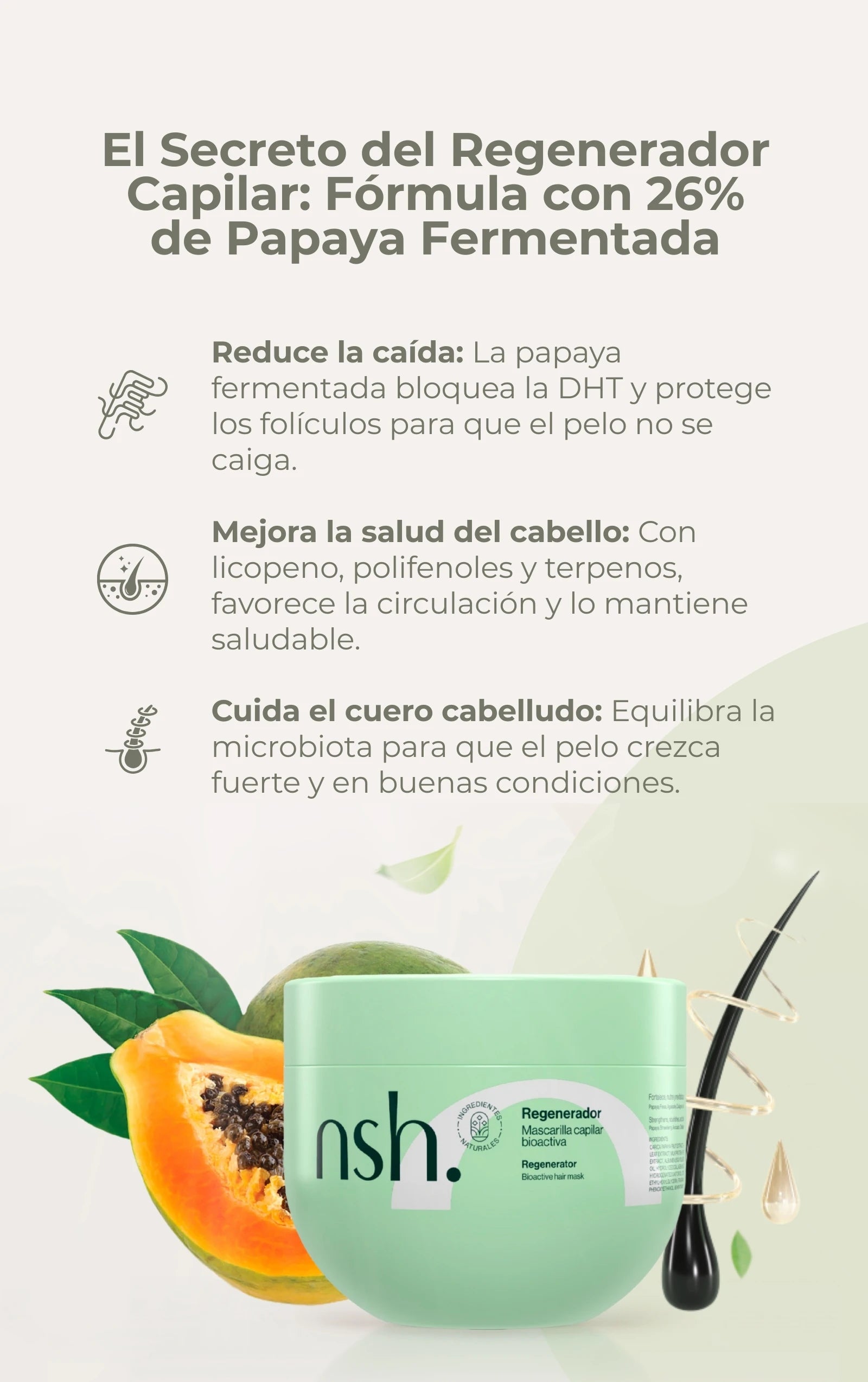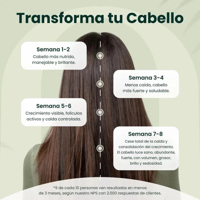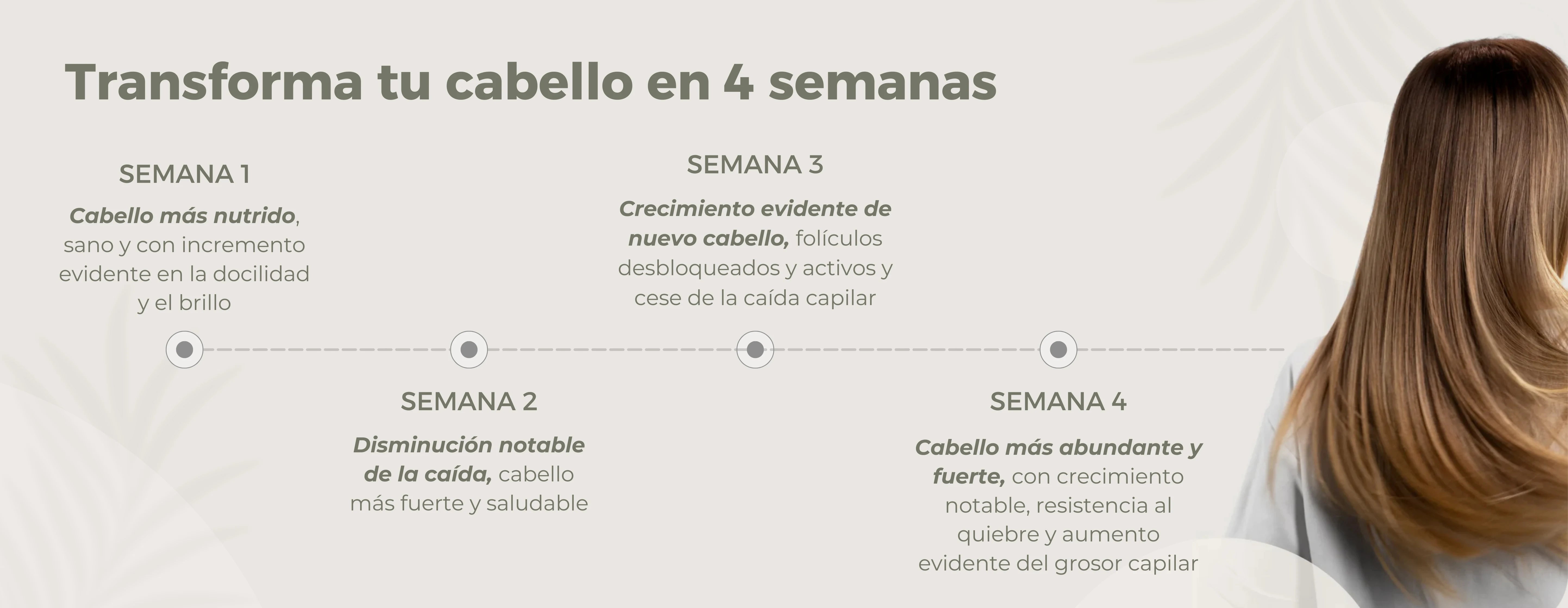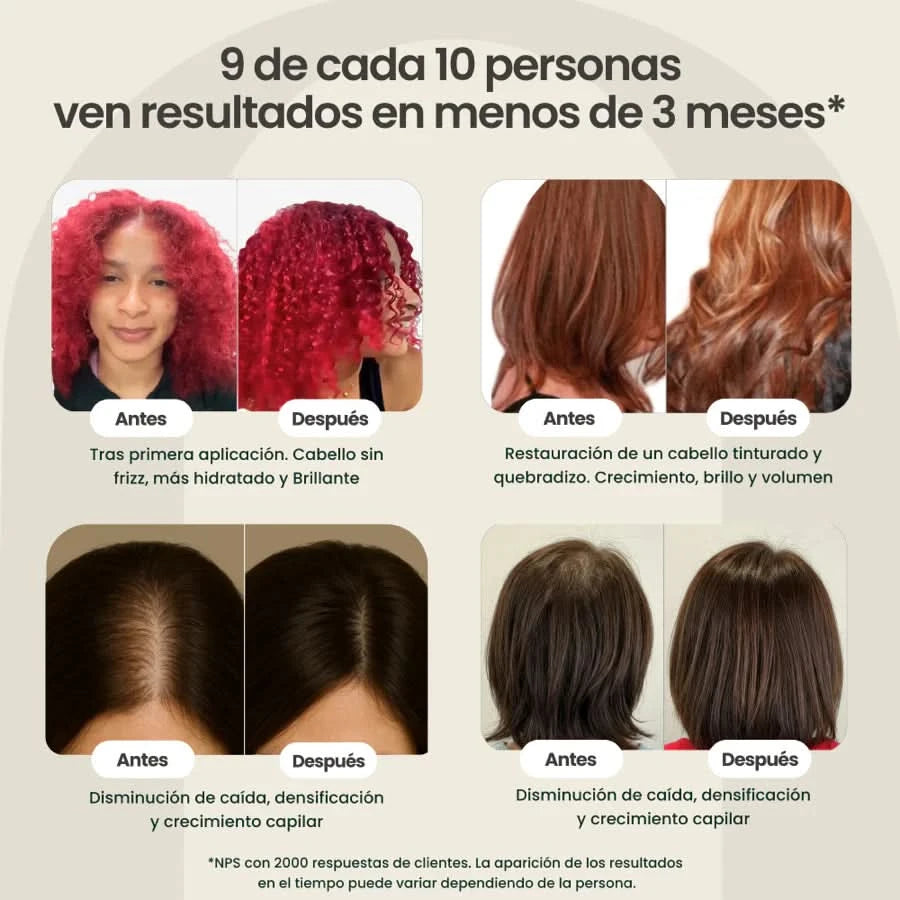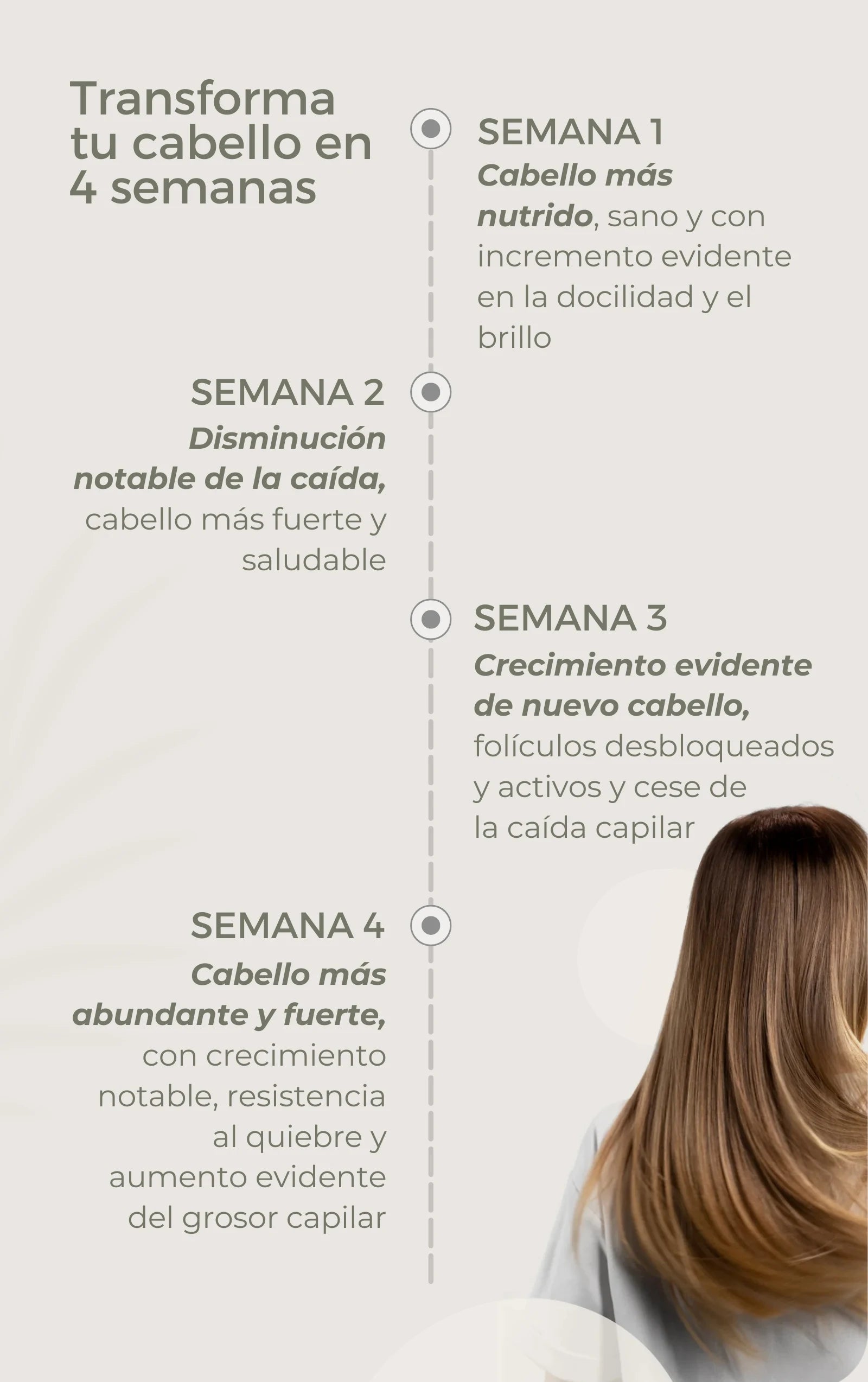Los resultados del uso de estos productos son progresivos. Desde la primera aplicación, notará mayor suavidad y facilidad de peinado. Cambios significativos en la salud del cabello se perciben desde la primera semana de uso regular (2-3 veces por semana). Para ver resultados más sustanciales en términos de fortalecimiento, reducción de la caída y mejora general de la salud capilar, se recomienda un uso constante durante 4 semanas. El crecimiento del cabello se vuelve detectable mensualmente con el uso continuo del regenerador.