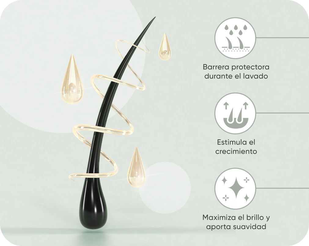 Esta tecnología ayuda a mantener intacto el complejo de membrana celular de tu cabello, que es crucial para prevenir daños, caída y rotura. A diferencia de los champús convencionales, que sin notarlo día a día nos generan maltrato, sequedad e incluso caída. El resultado es un cabello más fuerte, saludable y resistente desde el primer uso. Experimenta cómo la ciencia avanzada puede mejorar la salud de tu cabello día tras día.