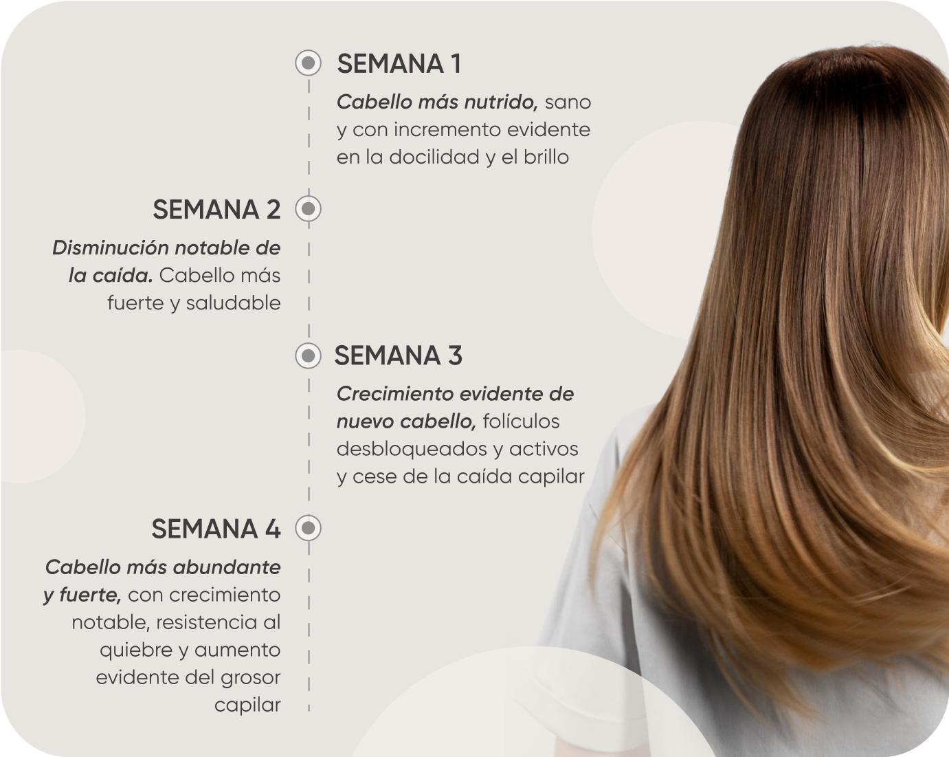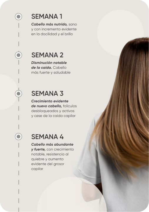 Será posible percibir nutrición y restauración desde la primera aplicación, con cambios notorios desde la primera semana (con frecuencia mínima de aplicación de 2-3 veces por semana), el crecimiento se detecta mensual.