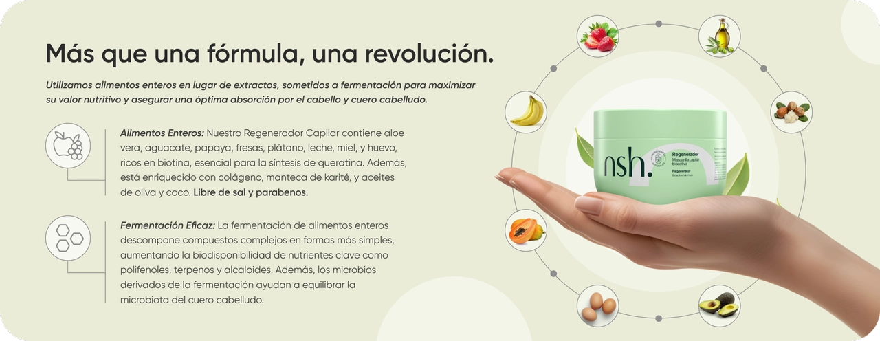 Nutre los microorganismosbuenos del cuero cabelludoy estimula el folículo